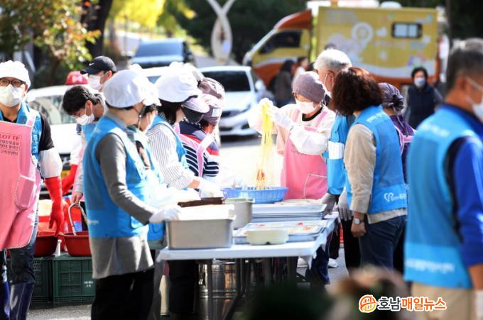 ¿ÃÇØ »ç¶ûÀÇ ¹äÂ÷´Â ºÏ±¸Á¾ÇÕÀÚ¿øºÀ»ç¼¾ÅÍ ÁÖ°üÀ¸·Î ¿î¿µµÇ¸ç IBK±â¾÷ÀºÇà ÈÄ¿ø°ú ÇÔ²² 10°³ Áö¿ª ºÀ»ç´Üü¿Í µ¿ ÀÚ¿øºÀ»ç Ä·ÇÁ °ü°èÀÚ°¡ Â÷·® ¿îÇà, À½½Ä Áغñ, ¹è½Ä µî¿¡ Âü¿©ÇØ Ãë¾à°èÃþ¿¡ Áö¿ª»çȸ Á¤À» ÀüÇÑ´Ù.