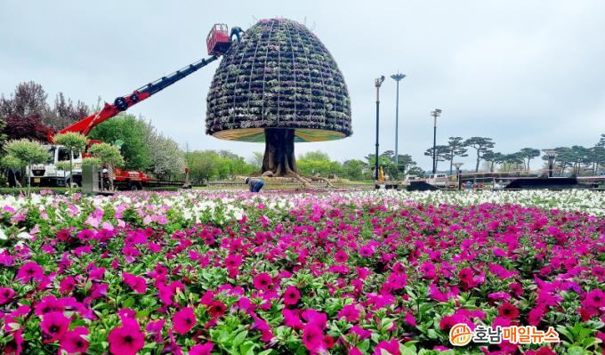 ÇÔÆò±ºÀº ¿¢½ºÆ÷°ø¿ø ÁÖÁ¦°ü ¾ÕÁö¸§ 10m, ³ôÀÌ 14m ±Ô¸ðÀÇ ²Þ³ª¹«, Èñ¸Á³ª¹« Á¶Çü¹°¿¡ ¿þÀ̺ê»çÇÇ´Ï¾Æ ÈºÐ 4õ º»À» ÅõÀÔ, ²Éž Á¶¼º ÀÛ¾÷À» ½Ç½ÃÇϰí ÀÖ´Ù.