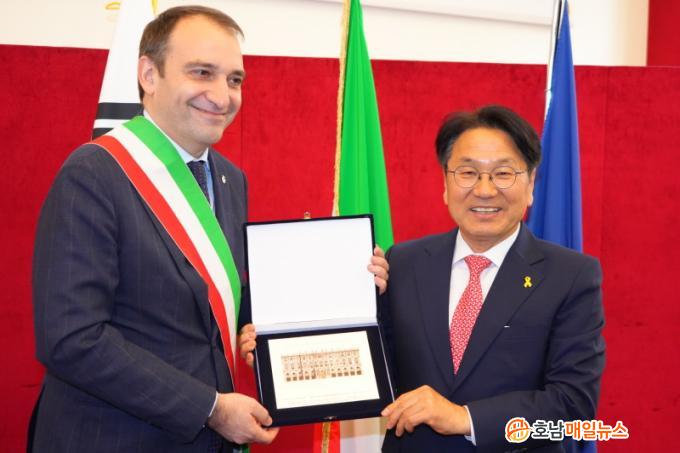 °±âÁ¤ ±¤ÁÖ±¤¿ª½ÃÀå°ú ½ºÅ×ÆÄ³ë ·Î ·ç½î Å丮³ë½ÃÀåÀº 15ÀÏ(ÇöÁö½Ã°£) ÀÌÅ»¸®¾Æ Å丮³ë½Ãû¿¡¼ ¡®±¤ÁÖ-Å丮³ë ¿ìÈ£Çù·Â ÇùÁ¤¼¡¯¿¡ ¼¸íÇß´Ù.