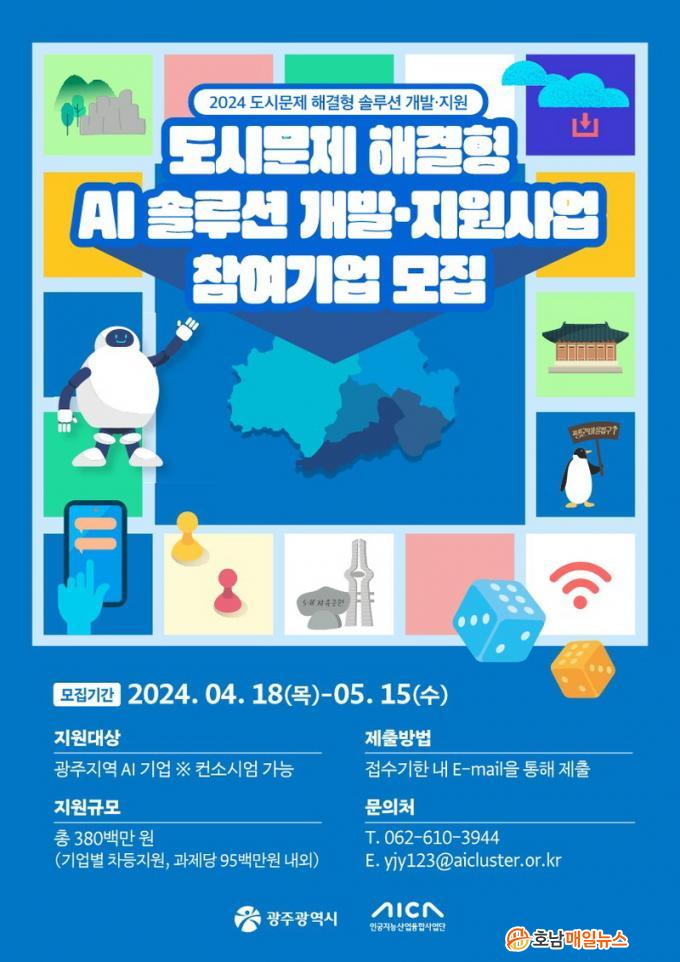 ¿ÃÇØ ¡®µµ½Ã¹®Á¦ ÇØ°áÇü AI ¼Ö·ç¼Ç Áö¿ø»ç¾÷¡¯¿¡ Âü¿©¸¦ Èñ¸ÁÇÏ´Â ±¤ÁÖÁö¿ª ÀΰøÁö´É±â¾÷Àº ¿À´Â 5¿ù 15ÀϱîÁö ÀΰøÁö´É»ê¾÷À¶ÇÕ»ç¾÷´Ü ´©¸®Áý(http://aica-gj.kr)À» ÅëÇØ Áö¿øÇÏ¸é µÈ´Ù.