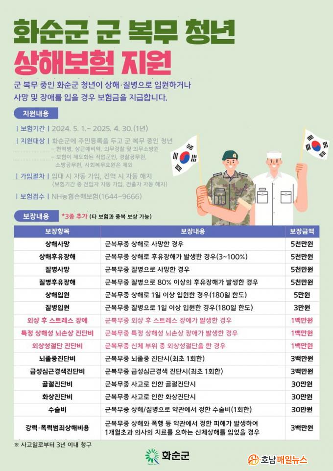 º¸Çè °¡ÀÔ ±â°£Àº 2024³â 5¿ù 1ÀϺÎÅÍ 2025³â 4¿ù 30ÀϱîÁö 1³â°£À̰í, º°µµÀÇ °¡ÀÔ ÀýÂ÷ ¾øÀÌ ±º¿¡ ÀÔ´ëÇÒ ½Ã ÀÚµ¿ °¡ÀÔ, Àü¿ª ½Ã ÀÚµ¿ ÇØÁöµÈ´Ù.