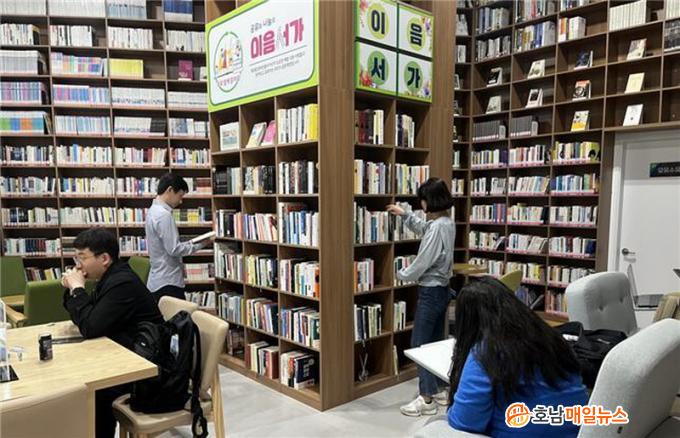 ±¤ÁÖ ³²±¸(±¸Ã»Àå ±èº´³»)´Â ÁÖ¹ÎÀÌ ¼ÒÀ¯ÇÑ Ã¥À» ŸÀΰú °øÀ¯ÇÏ¸ç ³ª´®°ú ¼ÒÅëÀÇ °¡Ä¡¸¦ Ãß±¸ÇÏ´Â ¡®ÀÌÀ½¼°¡¡¯¸¦ ¿î¿µÇÑ´Ù. 23ÀÏ ³²±¸¿¡ µû¸£¸é ÃÖ±Ù ³²±¸Ã» 1Ãþ ºÏ Ä«Æä¿¡ ÀÌÀ½¼°¡ Äڳʰ¡ »õ·Ó°Ô ¹®À» ¿¾ú´Ù. ºÏ Ä«Æä Á߽ɺο¡ À§Ä¡ÇÑ º®¸éÇü ¼°¡·Î, °¡·Î 140§¯¿¡ ¼¼·Î 280§¯ Å©±âÀÇ 2°³¸éÀÌ ÀÌÀ½¼°¡ °ø°£ÀÌ´Ù.