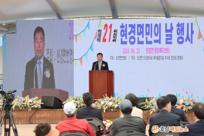 ±è³ª¿¬ Çö°æ¸éÀåÀº ¡°Á¦21ȸ Çö°æ¸é¹ÎÀÇ ³¯ Çà»ç¸¦ Áö¿ªÁֹεéÀÇ ¼ÒÅë°ú ÈÇÕÀÇ ÀÚ¸®·Î À̲ø¾î ÁֽŠÇö°æ¸é ¹ø¿µÈ¸¿¡ °¨»çÀÇ ¸»¾¸À» µå¸®¸ç, ¾ÕÀ¸·Îµµ ¹ø¿µÈ¸¿Í ÇÔ²² ÁֹΠ°£ ÈÇÕ°ú Áö¿ª ¹ßÀüÀ» À§ÇØ ÃÖ¼±À» ´ÙÇϰڴ١±°í ¹àÇû´Ù.