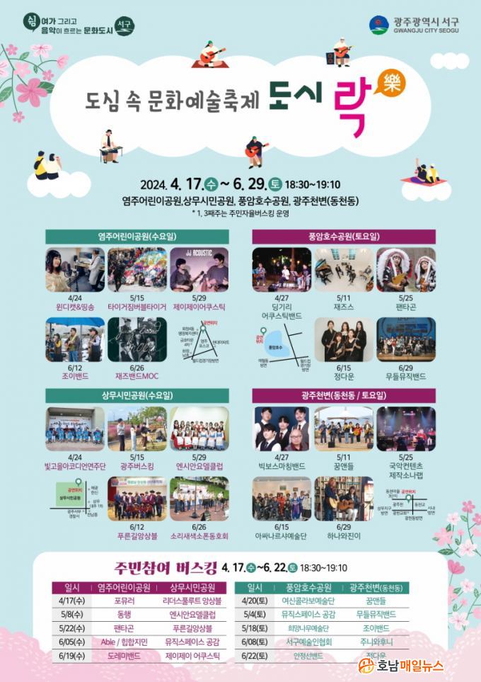 ¡®µµ½Ã ¶ô¡¯Àº °ø¸ð¿¡ ¼±Á¤µÈ 40°³ ¿¹¼ú´Üü(µÑ°ÁÖ¡¤³Ý°ÁÖ)¿Í ÁֹΠÀÚÀ²¹ö½ºÅ·(ù°ÁÖ¡¤¼Â°ÁÖ)À¸·Î ³ª´µ¾î ÁøÇàµÇ¸ç ¿°Á־À̰ø¿ø°ú »ó¹«½Ã¹Î°ø¿øÀº ¸ÅÁÖ ¼ö¿äÀÏ, dz¾ÏÈ£¼ö°ø¿ø°ú ±¤ÁÖõº¯(µ¿Ãµµ¿)Àº ¸ÅÁÖ Åä¿äÀÏ Àú³á 6½Ã 30ºÐºÎÅÍ 40ºÐ µ¿¾È °ø¿¬ÀÌ ÆîÃÄÁø´Ù.