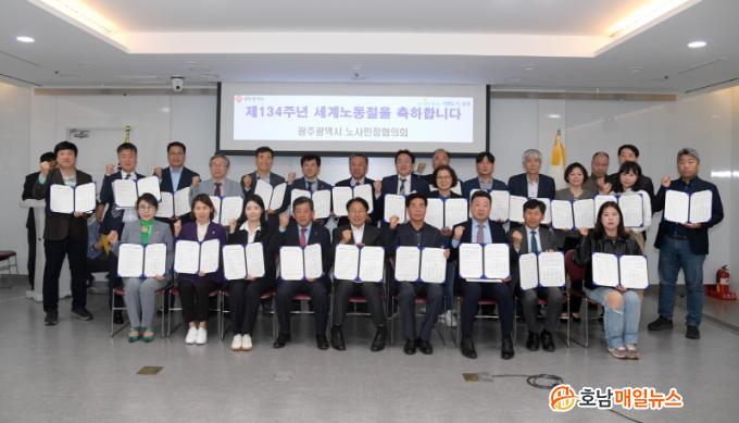 ±¤ÁÖ±¤¿ª½Ã(½ÃÀå °±âÁ¤)´Â 25ÀÏ ½Ãû ¼ÒȸÀǽǿ¡¼ ¡®2024³â Á¦1Â÷ ³ë»ç¹ÎÁ¤ÇùÀÇȸ¡¯¸¦ ¿°í ¡®ÀÏÇÏ´Â ¸ðµç »ç¶÷ÀÇ µµ½Ã, ±¤ÁÖ ½ÇÇö¡¯À» À§ÇÑ ³ë»ç¹ÎÁ¤ °øµ¿ ¼±¾ðÀ» Çß´Ù.