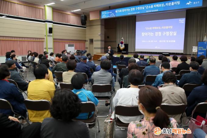 ±¤Áֽà ±¤»ê±¸(±¸Ã»Àå ¹Úº´±Ô)°¡ Áö³ 26ÀÏ ±¸Ã» 7Ãþ À±»ó¿øÈ¦¿¡¼ ã¾Æ°¡´Â °æÃ» ±¸Ã»Àå½Ç°ú ¿¬°èÇØ ¡®±º¼ÒÀ½ ÇÇÇØº¸»ó¡¯¿¡ ´ëÇÑ ½Ã¹Î ÀǰßÀ» µè´Â ÁÖ¹ÎȸÀÇ(Ÿ¿îȦ¹ÌÆÃ)¸¦ °³ÃÖÇß´Ù.