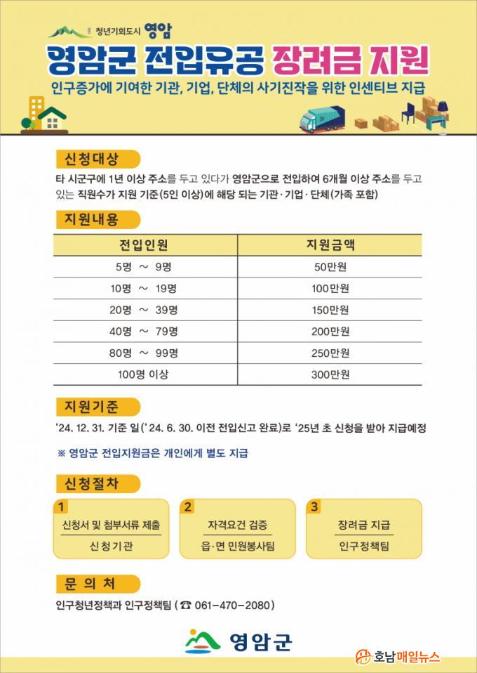 Àα¸ ÀüÀÔ À¯°ø Àå·Á±Ý Áö¿ø»ç¾÷¿¡ ´ëÇÑ ÀÚ¼¼ÇÑ ¾È³»´Â ¿µ¾Ï±º Àα¸Á¤Ã¥ÆÀ(061-470-2080)¿¡¼ ¾È³»ÇÑ´Ù.