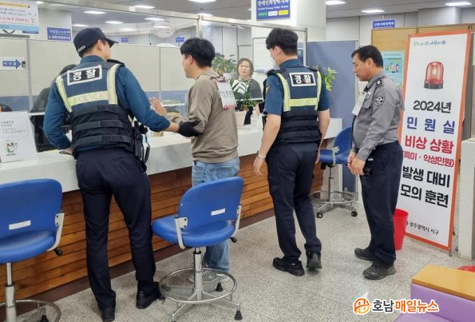 ¼±¸´Â Áö³´Þ 30ÀÏ Æø¾ð․ÆøÇà․À§Çù․³µ¿ µîÀ¸·ÎºÎÅÍ ¹Î¿ø´ã´ç °ø¹«¿øÀ» º¸È£ÇÏ°í ºñ»ó»óȲ ¹ß»ý ½Ã Á÷¿øÀÇ ´ëÀÀ´É·ÂÀ» Çâ»ó½Ã۱â À§ÇØ ¼ºÎ°æÂû¼¿Í ÇÕµ¿À¸·Î ¡®2024³â »ó¹Ý±â ¹Î¿ø½Ç ºñ»ó»óȲ ´ëºñ ¸ðÀÇÈÆ·Ã¡¯À» ½Ç½ÃÇß´Ù.