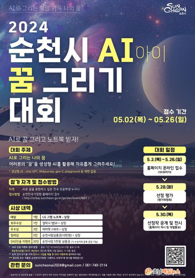 ´ëȸ ÁÖÁ¦´Â ¡¸AI·Î ³» ²ÞÀ» ±×¸®´Ù¡¹·Î êGPT, ¹ÌµåÀú´Ï µî »ý¼ºÇü AI¸¦ ÀÌ¿ëÇØ ³» ²ÞÀ» ÀÚÀ¯·Ó°Ô ±×·Á ¼øÃµ¸¸±¹°¡Á¤¿ø ȨÆäÀÌÁö(https://scbay.suncheon.go.kr/garden/event/0001)¿¡ ÀÛǰÀ» Á¦ÃâÇÏ¸é µÈ´Ù.