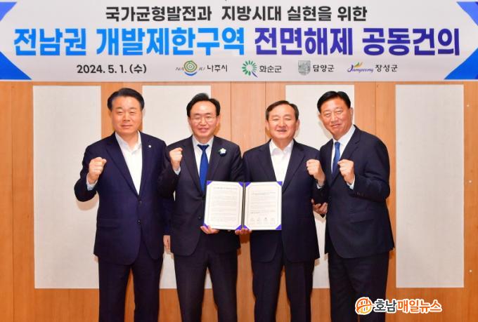 [È£³²¸ÅÀÏ´º½º = ±è±Ý´ö ±âÀÚ] À强±º°ú ³ªÁÖ½Ã, È­¼ø±º, ´ã¾ç±º ÀÚÄ¡´ÜüÀåÀÌ 1ÀÏ °£´ãȸ¸¦ °®°í Àü³²±Ç °³¹ßÁ¦Çѱ¸¿ª Àü¸é ÇØÁ¦¸¦ Á¤ºÎ¿¡ °ÇÀÇÇß´Ù.