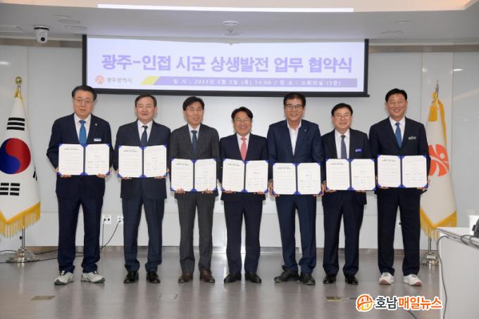 ±¤ÁÖ±¤¿ª½Ã(½ÃÀå °±âÁ¤)´Â 2ÀÏ ±¤ÁÖ½Ãû ¼ÒȸÀǽǿ¡¼ ¡®ºû°íÀ» ±¤¿ª°æÁ¦±Ç Á¶¼ºÀ» À§ÇÑ »ó»ý¹ßÀü ¾÷¹«Çù¾à½Ä¡¯À» °³ÃÖÇß´Ù. À̳¯ Çù¾à½Ä¿¡´Â °±âÁ¤ ±¤ÁÖ½ÃÀå, À̺´³ë ´ã¾ç±º¼ö, ±¸º¹±Ô ȼø±º¼ö, ÀÌ»óÀÍ ÇÔÆò±º¼ö, °Á¾¸¸ ¿µ±¤±º¼ö, ±èÇÑÁ¾ À强±º¼ö, ¾È»óÇö ³ªÁֺνÃÀå µîÀÌ Âü¼®Çß´Ù.