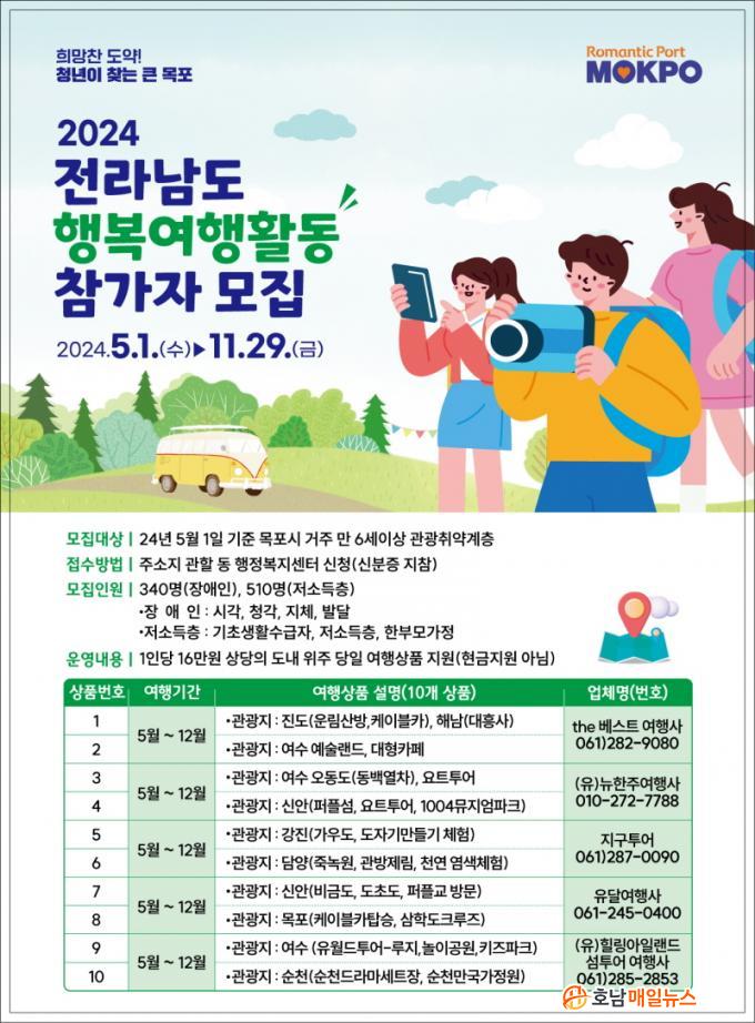°Åµ¿ÀÌ ºÒÆíÇÑ Àå¾ÖÀΰú 70¼¼ ÀÌ»óÀÇ °í·ÉÀÚÀÇ °æ¿ì °¡Á·, ÁöÀÎ, Ȱµ¿º¸Á¶ÀÎ µî 1ÀαîÁö µ¿Çà°¡´ÉÇϸç, µ¿ÇàÀÎÀÇ ¿©Çà°æºñµµ Ãß°¡ Áö¿øµÈ´Ù. ¿©Çà »óǰÀº 10°³ (Áøµµ¡¤Çس², ¿©¼ö, ½Å¾È, °Áø, ´ã¾ç, ¸ñÆ÷, ¼øÃµ)À¸·Î ´Ù¾çÇÏ°Ô ±¸¼ºµÇ¾î ÀÖÀ¸¸ç ¿À´Â 13ÀϺÎÅÍ 12¿ù 15ÀϱîÁö ÁøÇàµÈ´Ù. Âü¿© Èñ¸ÁÀÚ´Â 11¿ù 29ÀϱîÁö °üÇÒ µ¿ ÇàÁ¤º¹Áö¼¾ÅÍ¿¡ ½ÅºÐÁõÀ» ÁöÂüÇÏ°í ¹æ¹®ÇÏ¿©¾ß ÇÏ¸ç ¼±Âø¼øÀ¸·Î ¸¶°¨µÈ´Ù.