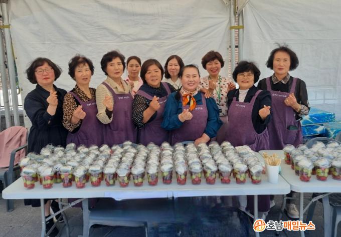 700¿© ¸íÀÌ Âü¼®ÇÑ ±º¹ÎÀÇ ³¯ Çà»ç¿¡¼ ¿©¼º´ÜüÇùÀÇȸ´Â Áö¿ª ³ó»êǰÀÎ Å丶Åä, ÀûÆ÷µµ, ûÆ÷µµ, ÀýÆí 2Á¾ÀÌ ´ã±ä °úÀÏÄÅ 300°³¸¦ ÆÇ¸ÅÇß´Ù. À̳¯ Çà»ç¸¦ ÅëÇØ ¾òÀº ÆÇ¸Å ¼öÀÍÀº Áö¿ªÀÇ ¾î·Á¿î ÀÌ¿ôÀ» µ½±â À§ÇØ »ç¿ëÇÒ ¿¹Á¤ÀÌ´Ù.