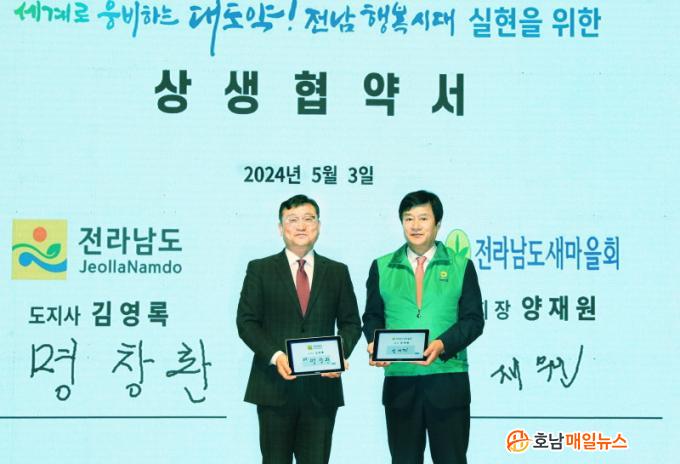 Àü³²µµ´Â 3ÀÏ µµÃ» ±è´ëÁß°´ç¿¡¼ °³ÃÖµÈ Á¦14ȸ »õ¸¶À»ÀÇ ³¯ ±â³ä½Ä¿¡¼ Àü³²µµ»õ¸¶À»È¸¿Í Áö¿ª ¹ßÀüÀ» À§ÇÑ »ó»ý Çù¾àÀ» ÇÏ°í µµÁ¤ ÆÄÆ®³Ê·Î¼ Çù¾÷À» ´õ¿í °ÈÇϱâ·Î Çß´Ù.