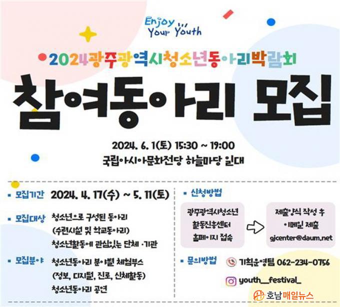 û¼Ò³â °ø¿¬ÆÀ ¹× µ¿¾Æ¸® ºÎ½º¿î¿µÆÀ ¸ðÁýÀº ¿À´Â 5¿ù 11ÀϱîÁö ÁøÇàµÇ¸ç, °ü·ÃµÈ ³»¿ëÀº ±¤ÁÖ±¤¿ª½Ãû¼Ò³âȰµ¿ÁøÈï¼¾ÅÍ È¨ÆäÀÌÁö¸¦ ÅëÇØ È®ÀÎÇÒ ¼ö ÀÖÀ¸¸ç ÀÚ¼¼ÇÑ »çÇ×Àº 062-234-0756À¸·Î ¹®ÀÇÇÏ¸é µÈ´Ù.