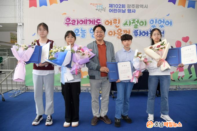°±âÁ¤ ±¤ÁÖ±¤¿ª½ÃÀåÀº Á¦102ȸ ¾î¸°À̳¯À» ¸Â¾Æ 5ÀÏ ½Ãû ½Ã¹ÎȦ¿¡¼ ¾î¸°ÀÌ °¡Á·°ú ÇÔ²² ¿ôÀ½²ÉÀ» ÇÇ¿ü´Ù. ° ½ÃÀåÀº ¾î¸°À̵é°ú °ø¿¬À» °ü¶÷Çϰí, dz¼±ºñÀüž ½×±âµµ ÇÔ²² Áñ°å´Ù. ¸ð¹ü¾î¸°ÀÌ Ç¥Ã¢ÀåÀ» ¼ö¿©Çϸç, ¾î¸°À̵éÀÇ ÇູÇÏ°í °Ç°ÇÑ ¼ºÀåÀ» ÀÀ¿øÇß´Ù.