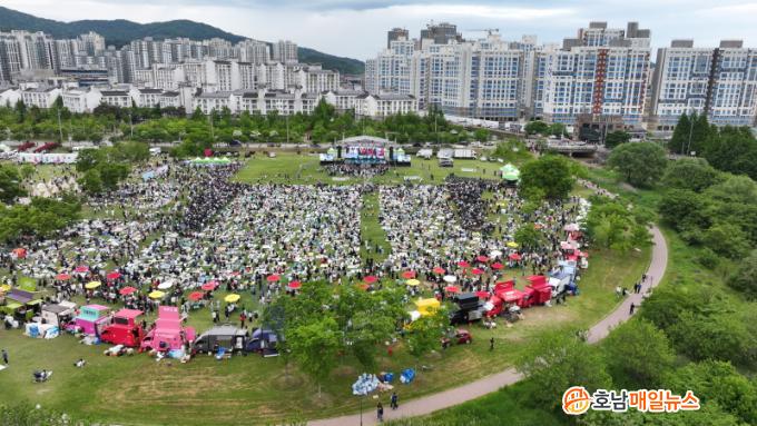 ±×¾ß¸»·Î ¡®°Å¸¦ ¹«´ë¡¯°¡ ¾ø¾ú´ø ÀÌÆ²°£ ¡®¹ÂÁ÷Æä½ºÆ¼¹ú¡¯ °ø¿¬Àº ÃàÁ¦ ÇöÀåÀ» ÇÔ¼º°ú ¿Á¤ °¡µæÇÑ ¿±¤ÀÇ µµ°¡´Ï·Î ¸¸µé¾ú´Ù. µÑ° ³¯ ¾Æ½±°Ô ¸¹Àº ºñ°¡ ³»·ÈÀ½¿¡µµ ÀûÁö ¾ÊÀº ½Ã¹ÎÀÌ ¹«´ë ¾ÕÀ» ¸Þ¿ì¸ç ¿±â°¡ ½ÄÁö ¾Ê¾Ò´Ù.