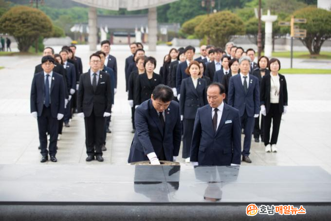 [È£³²¸ÅÀÏ´º½º = ±è±Ý´ö ±âÀÚ] ÀÌÁ¤¼± ±³À°°¨ÀÌ 7ÀÏ ¿ÀÀü 9½Ã ¡®5¡¤18¹ÎÁÖȿ 44Áֳ⡯À» ¸Â¾Æ ½Ã±³À°Ã» ¹× »êÇϱâ°ü °£ºÎ µî 50¿© ¸í°ú ÇÔ²² ±¹¸³5¡¤18¹ÎÁÖ¹¦Áö¸¦ ¹æ¹®ÇØ °ø½Ä Âü¹èÇß´Ù.