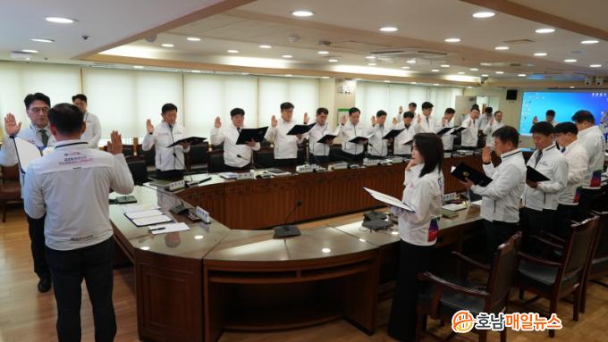 À̳¯ Çà»ç¿¡¼ °»óö ¾ÈÀüº¹Áö°úÀå(¹Ú¶÷ȸ ¾ÈÀü°ü¸®´ÜÀå)Àº °£ºÎµéÀ» ´ëÇ¥ÇØ ¾ÈÀü ¼±¼¸¦ Çϰí, °¢ ½Ç¡¤°úÀåµéÀº °¢ÀÚÀÇ ¼¸íÀ» ´ãÀº ¾ÈÀü¼¾à¼¸¦ ÁغñÀ§¿øÀå¿¡°Ô Àü´ÞÇß´Ù.