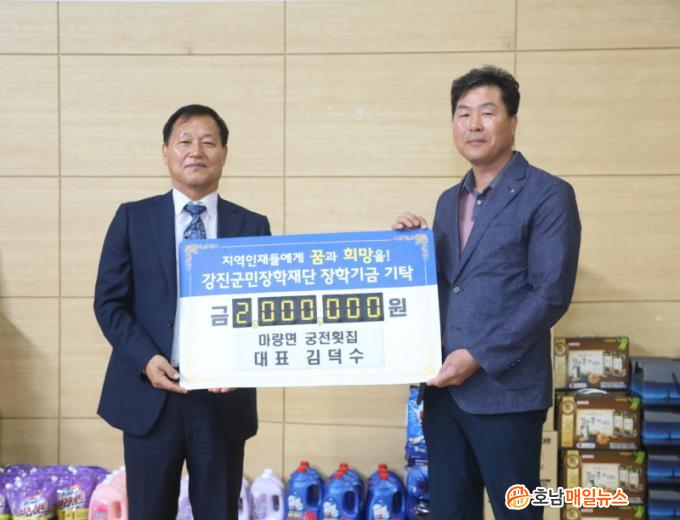 ¸¶·®¸é ±ÃÀüȽÁý ±è´ö¼ö ´ëÇ¥´Â ¡°¾î·Á¿î »óȲ ¼Ó¿¡¼µµ Çо÷¿¡ ¸ÅÁøÇÏ´Â Çлýµé¿¡°Ô ÀÛ°Ô³ª¸¶ µµ¿òÀÌ µÇ±æ ¹Ù¶õ´Ù¡±¸ç, "ÇлýµéÀÌ Áö¿ª¿¡ ´ëÇÑ ÀڽۨÀ» °¡Áö°í ¹è¿ò¿¡ Àü³äÇÏ±æ ¹Ù¶ó´Â ¸¶À½À¸·Î ÀåÇбâ±ÝÀ» ±âºÎÇß°í ¾ÕÀ¸·Îµµ Áö¿ª ±³À° ¹ßÀüÀ» À§ÇÑ ´Ù¾çÇÑ È°µ¿À» À̾°Ú´Ù¡±°í ¸»Çß´Ù.