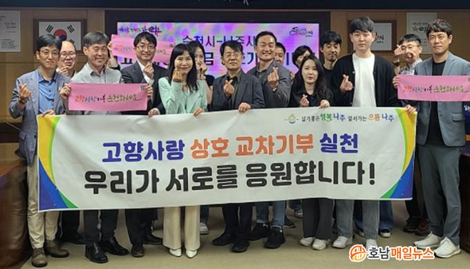 ³ªÁÖ½Ã(½ÃÀå À±º´ÅÂ)´Â ÃÖ±Ù ±âȹ¿¹»ê½Ç Á÷¿øµéÀÌ ¼øÃµ½ÃûÀ» ¹æ¹®ÇØ °íÇâ»ç¶û±âºÎ±Ý ±³Â÷ ±âºÎ½ÄÀ» °¡Á³´Ù°í 9ÀÏ ¹àÇû´Ù.