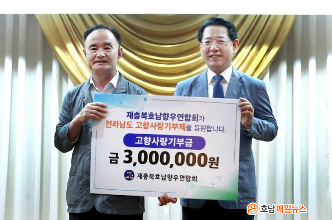 ÀçÃæºÏÈ£³²Çâ¿ìȸ¿øµéÀº ¹Ì·¡ Àü³²¹ßÀüÀ» À§ÇØ Àû±ØÀûÀÎ Áö¿ø°ú ÀÀ¿øÀ» ¾à¼ÓÇÏ´Â µî Àü³²µµ¿Í ´õ¿í ¼ÒÅëÀ» °ÈÇÒ °ÍÀ» °Á¶Çß´Ù. ¶Ç ȸ¿øµéÀº °¢º°ÇÑ ¾ÖÁ¤ÀÌ ´ã±ä °íÇâ»ç¶û±âºÎ±Ý 300¸¸ ¿øÀ» Àü³²µµ¿¡ ±âŹÇϰí, Çâ¿ìȸ¿øµé°ú °¡Á·, ÁöÀεéÀÌ Âü¿©ÇÑ Àü³² »ç¶û¾Ö ¼Æ÷ÅÍÁî °¡ÀÔ½Åû¼¸¦ Àü´ÞÇß´Ù.