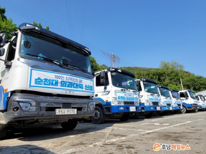 ¼øÃµ½Ã Á÷¿µ û¼ÒÂ÷·®°ú ´ëÇà»ç û¼ÒÂ÷·® ÃÑ 60´ë¿¡ ¡®100¸¸ Áö¿ª¹ÎÀÇ ²Þ ¼øÃµ´ë Àǰú´ëÇÐ ½Å¼³¡¯Çö¼ö¸·À» ºÎÂøÇϰí 24°³ À¾¸éµ¿ ±¸¼®±¸¼®À» µ¹¸ç Áö¿ª¹ÎÀÇ ±¹¸³¼øÃµ´ë ÀÇ´ë ½Å¼³ ÀÇÁö¸¦ ¾Ë¸®°í ÀÖ´Ù.