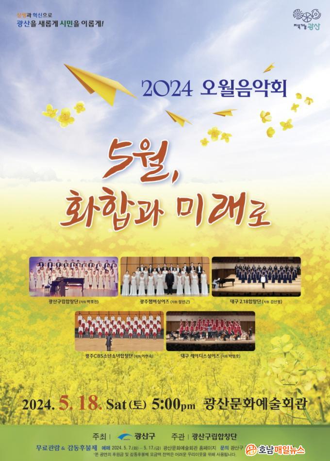 18ÀÏ ¿ÀÈÄ 5½Ã ±¤»ê¹®È¿¹¼úȸ°ü¿¡¼ ¿¸®´Â ¿À¿ùÀ½¾Çȸ´Â ¡®5¿ù, ÈÇÕ°ú ¹Ì·¡·Î¡¯¸¦ ÁÖÁ¦·Î ÇÑ´Ù. ±¤»ê±¸°¡ ¿À¿ùÀ½¾Çȸ¸¦ °³ÃÖÇÑ ÀÌ·¡ ÃÖÃÊ·Î ¿µ‧È£³²ÀÌ ÇÔ²²Çϴ Ưº°ÇÑ ¹«´ë¸¦ ¼±º¸ÀδÙ.