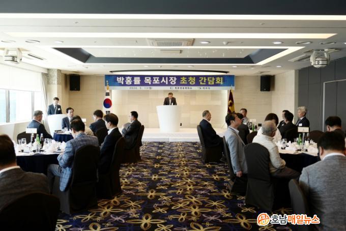 À̳¯ °£´ãȸ¿¡´Â ¸ñÆ÷»óÀÇ Á¤ÇöÅà ȸÀå°ú »ó°øÀÇ¿ø, ¹ÚÈ«·ü ¸ñÆ÷½ÃÀå°ú °£ºÎÁøµî 60¿©¸íÀÌ Âü¼®ÇÑ °¡¿îµ¥ Áö¿ªÇö¾È°ú ±â¾÷ÇöÀåÀÇ ¾Ö·Î¸¦ ûÃëÇÏ´Â ½Ã°£À» °¡Á³´Ù.