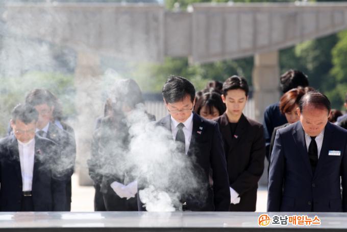 À̳¯ ¹Úº´±Ô ±¤»ê±¸Ã»Àå°ú ±¤»ê±¸ °øÁ÷ÀÚµéÀº ºÏ±¸ ¿îÁ¤µ¿ ±¹¸³5‧18¹ÎÁÖ¹¦Áö¸¦ ã¾Æ ¿À¿ù¿µ·ÉÀÇ Èñ»ý°ú Çå½ÅÀ» Ã߸ðÇϰí, ¿À¿ùÁ¤½Å °è½ÂÀ» ´ÙÁüÇß´Ù.