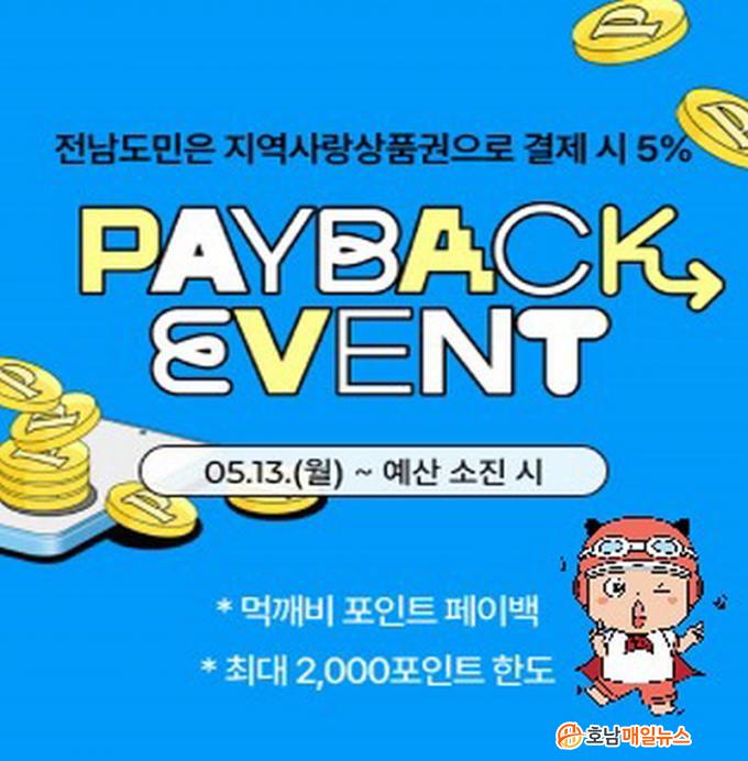 À̹ø À̺¥Æ®´Â °ø°ø¹è´Þ¾Û°ú Áö¿ª»ç¶û»óǰ±Ç µ¿½Ã »ç¿ë È®´ë¿¡ µû¸¥ ½Ã³ÊÁö È¿°ú¿Í Áö¿ª°æÁ¦ Ȱ¼ºÈ¸¦ À§ÇØ ÁøÇàµÇ´Â °ÍÀ¸·Î ¡®¸Ô±úºñ¡¯¿¡¼ Áö¿ª»ç¶û»óǰ±ÇÀ¸·Î ÁÖ¹®À» ¿Ï·áÇÑ °í°´¿¡°Ô ÃÖ´ë 5%(2,000¿ø Çѵµ) ¸Ô±úºñ Æ÷ÀÎÆ®¸¦ ¼±Âø¼øÀ¸·Î Áö±ÞÇÑ´Ù.