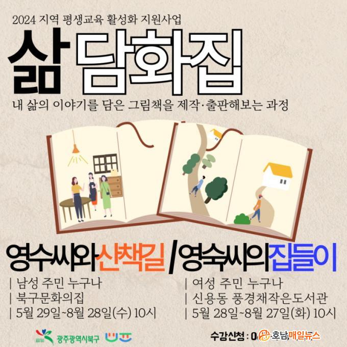 °ø¸ð ¼±Á¤¿¡ µû¶ó ºÏ±¸´Â 65¼¼ ÀÌ»ó ÁÖ¹ÎÀ» ´ë»óÀ¸·Î °í·ÉÃþ Àλý °æÇè°ú ÁöÇý µî ³ë³âÀÇ »î À̾߱⸦ ±×¸²Ã¥À¸·Î ¸¸µé¾îº¸´Â ¡®»î ´ãÈÁý¡¯ Æò»ýÇнÀ ÇÁ·Î±×·¥À» ¿À´Â 28ÀϺÎÅÍ 8¿ù 28ÀϱîÁö ¸ÅÁÖ È¿äÀϰú ¼ö¿äÀÏ¿¡ ¿î¿µÇÒ °èȹÀÌ´Ù.