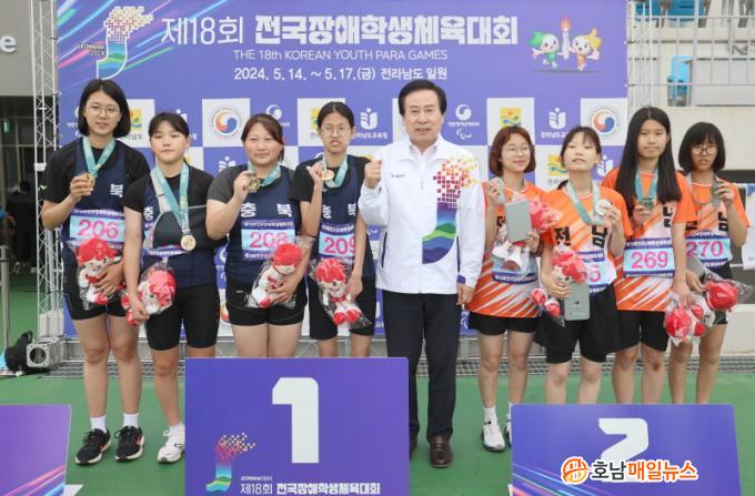 À̳¯ ¹Ú ½ÃÀåÀº À°»ó ¿©ÀÚ 400m °èÁÖ °æ±â(°íµîºÎ) ¸Þ´Þ ½Ã»ó½Ä¿¡¼ ¸Þ´ÞÀ» µý ¼±¼öµéÀ» Á÷Á¢ ½Ã»óÇϰí ÀÀ¿øÇß´Ù. À̾î, Àü³² °æÂûû, Àü³²µµ ¼Ò¹æº»ºÎ, Àü¶ó³²µµ Àå¾ÖÀÎüÀ°È¸ µî ´ëȸ »óȲ½ÇÀ» Â÷·Ê·Î ¹æ¹®ÇØ À½·á¼ö¿Í °úÀÏÀ» Àü´ÞÇß´Ù.