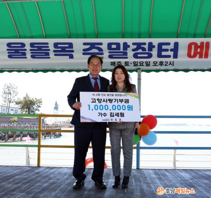 Áøµµ±º °í±º¸é Ãâ½ÅÀÎ °¡¼ö ±è¼¼¸²Àº ¿ïµ¹¸ñ ÁÖ¸»ÀåÅÍ °³Àå½Ä °ø¿¬¿¡ Âü¿©ÇÏ¸ç °íÇâ»ç¶û±âºÎ±ÝÀ» Àü´ÞÇß´Ù.