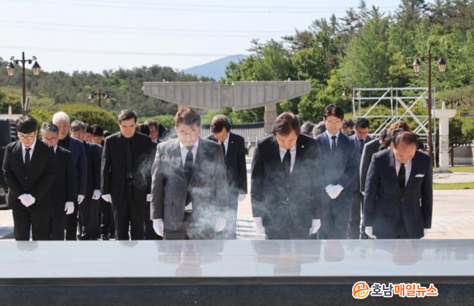 ±â³ä½Ä¿¡ ¾Õ¼ Á¤¼ºÅà ÃÑÀå°ú ÁÖ¿ä º¸Á÷ÀÚ, ±³Á÷¿ø, Ãѵ¿Ã¢È¸ ¹× ÃÑÇлýȸ µî °¢ Á÷¿ª ´ëÇ¥µéÀº ±¹¸³5.18¹ÎÁÖ¹¦Áö¿Í ¸Á¿ùµ¿ ±¸¹¦¿ªÀ» ã¾Æ ÇåÈ, ºÐÇâÇÑ µÚ, ¹ÎÁÖ¹¦Áö¿¡ ¾ÈÀåµÈ Àü³²´ë °ü·Ã ¹ÎÁÖ¿»ç 40¿© À§¿¡ ´ëÇØ °¢°¢ ÇåÈÇÏ¸ç ³ÌÀ» ±â·È´Ù.