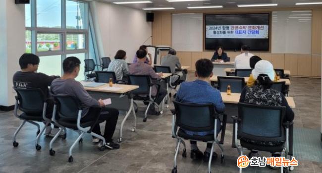 °ü°è °ø¹«¿ø, °ü³» °øÁßÀ§»ý ¼÷¹Ú¾÷¼Ò ´ëÇ¥ÀÚ µî 8¸íÀÌ Âü¼®ÇÑ À̹ø °£´ãȸ´Â ÇÔÆò±º °ü±¤»ê¾÷ ¹ßÀü°ú ¼÷¹Ú¾÷¼Ò Ȱ¼ºÈ¸¦ À§ÇÑ ¹æ¾ÈÀ» ¸ð»öÇϱâ À§ÇØ ¸¶·ÃµÆ´Ù.
