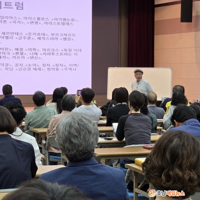 °ÀǴ¡®ÁÖ°æ¾ßµ¶-½ÃÀΠȲÁö¿ì¿Í ÇÔ²²ÇÏ´Â ¸íÀÛÀбâ1¡¯°Á·Π5¿ùºÎÅÍ 10¿ù±îÁö ¸Å¿ù µÑ°, ³Ý°ÁÖ ±Ý¿äÀÏ Àú³á¿¡ ¿î¿µÇÑ´Ù. °Á¿¡¼´Â ±×¸®½º °íÀü¿¡ Áß½ÉÀ» µÎ°í, È£¸Þ·Î½ºÀÇ 「Àϸ®¾Æ½º」, ÇöóÅæÀÇ 「±¹°¡」 ¾Æ¸®½ºÅäÅÚ·¹½ºÀÇ 「±¹°¡」 ¾ÆÀ̽ºÅ³·Î½ºÀÇ 「¾Æ°¡¸â³í ¿Õ」¡¤「¿ÀÀ̵ðǪ½º ¿Õ」, ´ÏüÀÇ 「ºñ±ØÀÇ Åº»ý」¿¡ À̸£±â±îÁö Á¦¸ñÀº ¾ËÁö¸¸ ¿Ïµ¶ÇÑ »ç¶÷Àº ã±â ¾î·Æ´Ù´Â ¸íÀÛÀ» ȲÁö¿ì ½ÃÀÎÀÇ ÇØ¹ÚÇÑ Áö½Ä°ú ½ÃÀÎ´Ù¿î ºñÀ¯¸¦ ´õÇØ °íǰ°Ý Àι® °Á·ΠÁøÇàÇÏ°Ô µÈ´Ù.