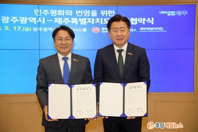 ±¤ÁÖ±¤¿ª½Ã¿Í Á¦ÁÖÆ¯º°ÀÚÄ¡µµ´Â 17ÀÏ ¿ÀÈÄ ±¤ÁÖ½Ãû¿¡¼ °±âÁ¤ ½ÃÀå°ú ¿À¿µÈÆ Áö»ç°¡ Âü¼®ÇÑ °¡¿îµ¥ À뱂 ÆòÈ¿Í ¹ø¿µÀ» À§ÇÑ ¡®»ó»ý¹ßÀü ¾÷¹«Çù¾à¡¯À» ü°áÇß´Ù.