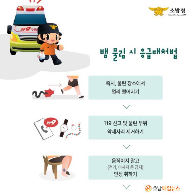 ¿µ¾Ï±ºº¸°Ç¼Ò´Â ¡°º½Ã¶ ¾ß¿ÜȰµ¿ ½Ã ±ä¹ÙÁö¿Í Àåȸ¦ Âø¿ëÇϵµ·Ï Çϰí, ¹ì¿¡ ¹°·ÈÀ» °æ¿ì °£´ÜÇÑ ÀÀ±Þóġ ÈÄ ÃÖ´ëÇÑ »¡¸® ÀÇ·á±â°üÀ¸·Î ȯÀÚ¸¦ À̼ÛÇØ¾ß ÇÑ´Ù. ¸¸ÀÏÀÇ »ç°í¿¡ ´ëºñÇÒ ¼ö ÀÖµµ·Ï ¿Ã¹Ù¸¥ ÀÀ±ÞÁ¶Ä¡ »çÇ×À» ¼÷ÁöÇØÁÖ±æ ¹Ù¶õ´Ù¡±°í ÀüÇß´Ù.
