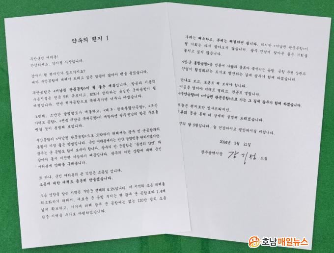 °±âÁ¤ ±¤ÁÖ±¤¿ª½ÃÀåÀº 21ÀÏ ¡°¹«¾È°øÇ׿¡ ´ëÇØ µå¸®°í ½ÍÀº ¸»¾¸ÀÌ ¸¹¾Æ ÆæÀ» µé¾ú´Ù¡±¸ç ¹«¾È±º¹Î¿¡°Ô µå¸®´Â ¡®¾à¼ÓÀÇ ÆíÁö1¡¯¸¦ ¶ç¿ü´Ù.