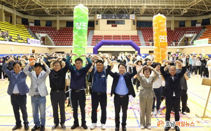 À̳¯ Âü°¡ÀÚµéÀº °øÁ÷ÀÚµéÀÇ ¸¶À½À» Çѵ¥ ¸ð¾Æ ³ª¾Æ°¡ÀÚ´Â ÀǹÌÀÇ ÆÛÆ÷¸Õ½º¸¦ ½ÃÀÛÀ¸·Î Àü ºÎ¼°¡ 4°³ÆÀ(¿µ¶û, ûÀÚ, ´Ù»ê, Çϸá)À» ÀÌ·ï ¸í¶û¿îµ¿È¸¸¦ ÅëÇØ ¼·Î ÈÇÕÇÏ°í µ¿·á¾Ö¸¦ µ·µ¶È÷ ´ÙÁ³´Ù.