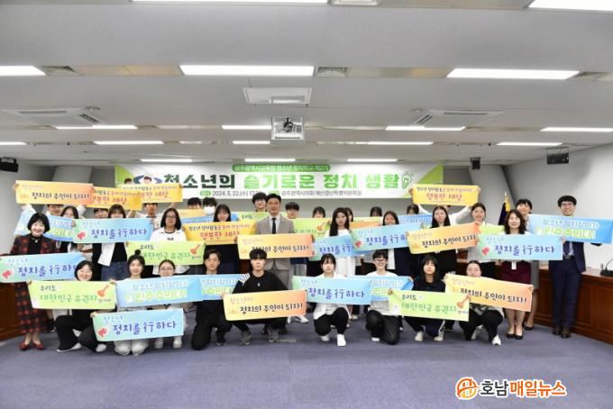 À̳¯ °³°½Ä¿¡¼ ±¤ÁÖ±¤¿ª½ÃÀÇȸ À̸í³ë ÀÇ¿øÀ» ÃʺùÇØ û¼Ò³â Á¤Ä¡Çб³ 2±â¿¡ Âü¿©ÇÏ´Â 33¸í ´ë»ó Ư°ÀÌ ÁøÇàµÆ´Ù. À̸í³ë ÀÇ¿øÀº ¡®Ã»³â Á¤Ä¡ÀÎ À̸í³ëÀÇ Ã»³â Á¤Ã¥¡¯À» ÁÖÁ¦·Î À̾߱âÇϸç û¼Ò³âÀÇ Á¤Ä¡Âü¿© Á߿伺À» °Á¶Çß´Ù.
