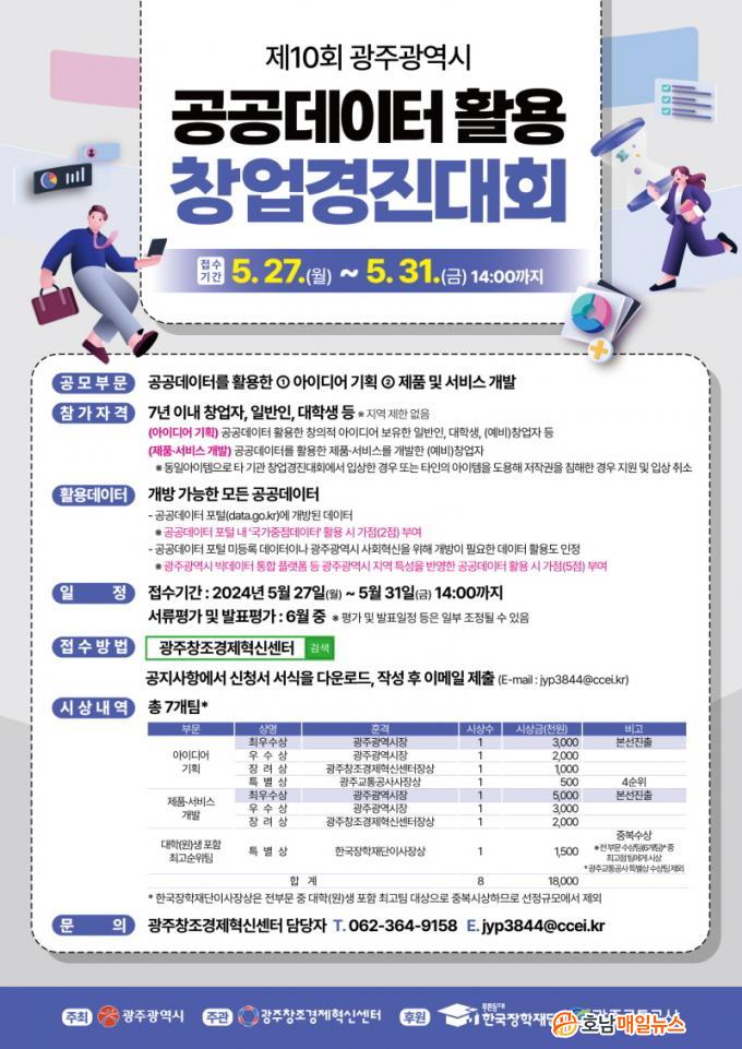 ±¤ÁÖ±¤¿ª½Ã(½ÃÀå °±âÁ¤)´Â °ø°øµ¥ÀÌÅ͸¦ Ȱ¿ëÇÑ Ã¢ÀÇÀû ¾ÆÀ̵ð¾î¿Í ºñÁî´Ï½º ¸ðµ¨À» ¹ß±¼Çϰí â¾÷À» Ȱ¼ºÈÇϱâ À§ÇØ ¡®Á¦10ȸ ±¤ÁÖ±¤¿ª½Ã °ø°øµ¥ÀÌÅÍ È°¿ë â¾÷°æÁø´ëȸ¡¯¸¦ 6¿ù12ÀϺÎÅÍ 26ÀϱîÁö ¿¬´Ù.