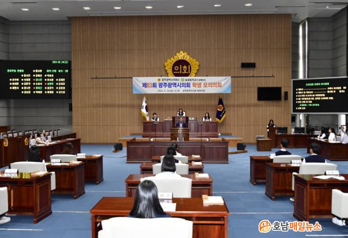 ÇÑÆí, ±¤ÁÖ±¤¿ª½ÃÀÇȸ´Â 2005³âºÎÅÍ ±¤ÁÖ±¤¿ª½Ã±³À°Ã»¿¡¼ ´ë»ó Çб³¸¦ Ãßõ¹Þ¾Æ Çлý ¸ðÀÇÀÇȸ¸¦ ÁøÇà Áß¿¡ ÀÖ°í, Áö±Ý±îÁö ÃÑ 83ȸ 8,300¿© ¸íÀÌ Ã¼ÇèÇßÀ¸¸ç, ¿¬¸»¿¡´Â ¸ðÀÇÀÇȸ Âü°¡ ÇлýµéÀÇ ¿ì¼ö üÇè¼ö±â¿¡ ´ëÇÑ ½Ã»óµµ ÇÒ °èȹÀÌ´Ù.