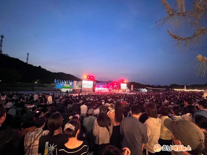 º» °ø¿¬ÀÌ ½ÃÀÛµÇÀÚ ÃàÁ¦ÀÇ ¸Å·ÂÀÌ ¿À·ÔÀÌ µå·¯³µ´Ù. °ø¿¬ÀåÀ» Áß½ÉÀ¸·Î ¹Ý¿øÀ» ±×¸®¸ç Á¶¼ºµÈ °è´Ü½Ä Àܵð±¤ÀåÀÌ ¸ô·Áµç ÀÎÆÄ·Î ±Ý¼¼ ¸Þ¿öÁ³´Ù. ÃàÁ¦°¡ ¿¸° Ȳ·æÁ¤¿ø Àܵð±¤Àå¿¡¸¸ 1¸¸¿© ¸íÀÌ ¹æ¹®ÇØ ¹ÂÁ÷ Æä½ºÆ¼¹úÀ» ÇÔ²² Çß´Ù.