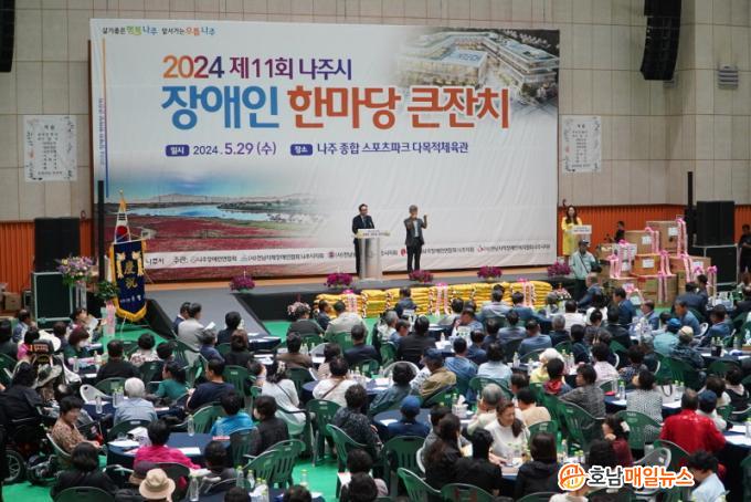ÁöüÀå¾ÖÀÎÇùȸ ³ªÁÖ½ÃÁöȸ ¸Í¿µÁß ÁöȸÀåÀÇ °³È¸¼±¾ðÀ¸·Î ½ÃÀÛµÈ ±â³ä½ÄÀº ¸ð¹üÀå¾ÖÀÎ ¹× Àå¾ÖÀκ¹Áö À¯°øÀÚ ½Ã»ó½Ä°ú ³»¡¤¿Üºó Ãà»ç µîÀ¸·Î ÁøÇàµÆ´Ù. ¾Õ¼± ½ÄÀü °ø¿¬¿¡¼´Â Àü³²ÁöÀûÀå¾ÖÀκ¹ÁöÇùȸ ³ªÁÖ½ÃÁöºÎ ȸ¿ø ¹× ¼º»ê¿ø(Àå¾ÖÀΰÅÁֽü³) ÀÌ¿ëÀεéÀÌ ¹«´ë¸¦ ²Ù¸ç Áñ°Å¿òÀ» ´õÇß´Ù.