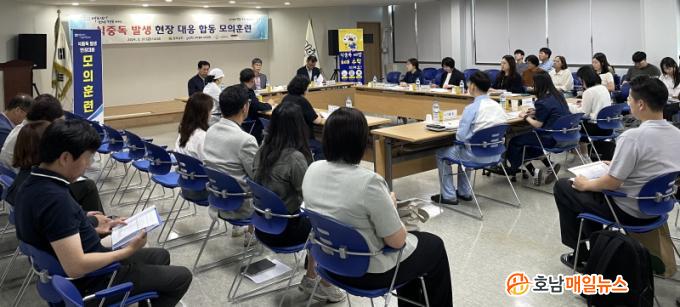 À̹ø ÈÆ·ÃÀº »ê¾÷ü ±Þ½ÄÀ¸·Î ´Ù¼ö ÀοøÀÌ ½ÄÁßµ¶ ÀÇ½É Áõ»óÀ» º¸ÀÌ´Â »óȲÀ» °¡Á¤Çϰí, »ê¾÷ü °ü°èÀÚ, µµ¡¤½Ã±º ½Å¼Ó´ëÀÀ¹Ý µî 50¿© ¸íÀÌ Âü¿©Çß´Ù.