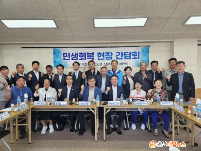 ÇöÀå °£´ãȸ¿¡´Â ¾Èµµ°É ±¹È¸ÀÇ¿øÀ» ºñ·ÔÇØ ³²±¤ÁÖ½ÃÀå »óÀÎȸ ¼Õ½Â±â ȸÀå, ³²±¤ÁÖÇØ¶ß´Â½ÃÀå »óÀÎȸ ÃÖÀçÈ£ ȸÀå, Á¶¼±´ë ¹è»óÇö ±³¼ö, È«±â¿ù ½ÃÀÇ¿ø, ¹Ú¹ÌÁ¤ ½ÃÀÇ¿ø, ±èÀç½Ä µ¿±¸ÀÇȸ ÀÇÀå µî °ü°èÀÚ 20¿© ¸íÀÌ Âü¼®ÇØ ¹Î»ýȸº¹À» À§ÇÑ ´Ù¾çÇÑ ÀǰßÀ» Á¦½ÃÇÏ¸ç ¿¶í Åä·ÐÀ» ÆîÃÆ´Ù.