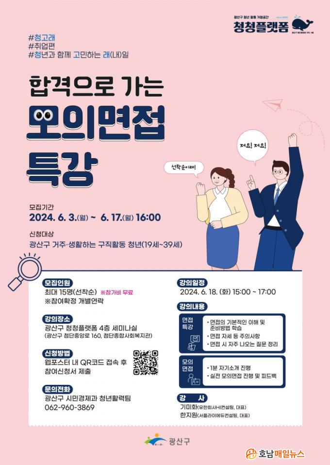 ÀÚ±â¼Ò°³¼ ÀÛ¼º °ÀÇ¿¡ ÀÌÀº û³â Ãë¾÷ Áö¿ø»ç¾÷À¸·Î, »óȲ ´ëÀÀ·Â°ú ¸»Çϱ⠴ɷÂÀ» ±æ·¯ ¸éÁ¢¿¡ ´ëÇÑ ÀڽۨÀ» °¡Áöµµ·Ï µ½´Â ÃëÁö´Ù. Ư°Àº 6¿ù 18ÀÏ ±¤»ê±¸ ûûÇ÷§Æû(÷´ÜÁ¾ÇÕ»çȸº¹Áö°ü(÷´ÜÁß¾Ó·Î 160) 4Ãþ)¿¡¼ ÁøÇàÇÑ´Ù.