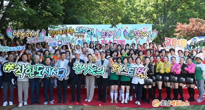 ¡®Ãµ»çµéÀÇ Æä½ºÆ¼¹ú¡¯¿¡ Âü¼®ÇÑ ±èÀ̰ ¼±¸Ã»ÀåÀº ¡°Ãµ»çµéÀÇ µû¶æÇÑ ¹è·Á¿Í ³ª´®, µ¹º½È°µ¿ÀÌ ±× ¹«¾ùº¸´Ù ¾Æ¸§´Ù¿î Çϸð´Ï¸¦ ÀÌ·ç¸ç ÁøÇÑ °¨µ¿À¸·Î ´Ù°¡¿Ô´Ù¡±¸ç ¡°18°³ µ¿ Àü¿ª¿¡ õ»ç»ç¾÷À» È®´ëÇØ ¸¶À»°ú ¸¶À»À» ÀÕ°í, ¸¶À½°ú ¸¶À½À» ÀÕ´Â ÂøÇѵµ½Ã ¼±¸¸¦ ½ÇÇöÇϰڴ١±°í ¸»Çß´Ù.